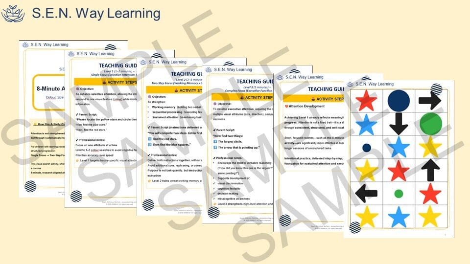 A structured, research-aligned attention training kit designed for SEN learners, early primary students, and therapists.