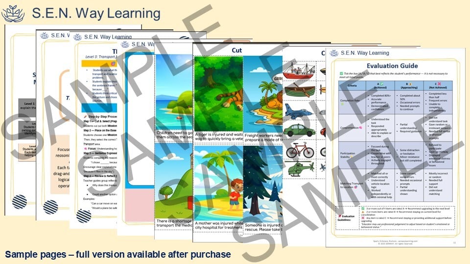 Sort & Learn: Transport in 8 Minutes a Day (Level 3) - A Scenario-Based Cognitive Reasoning Kit for SEN, Early Learners & Therapists
